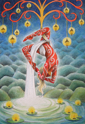 "Stillness and Silence descend upon the land. We turn to the void and befriend the dark, where dreams are born. Slither with Snake to the other side of suffering. She finds a lightless space, becomes still, without sight, and sheds her old skin. Travel down deep into the belly of the Mother. Feel Earth envelop you like a midnight blanket. Hush. The wisdom of Gaia is heard only when we become quiet and still."...